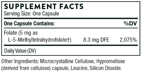 Contains 5 mg (5,000 µg) of L-methylfolate, the bioactive form of folate.