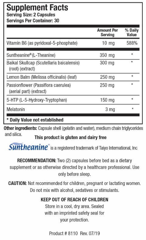 Take two (2) capsules before bed, or as directed by your healthcare professional. Use only before sleep. Not recommended for children, pregnant, or lactating women. Do not mix with alcohol, sedatives, or stimulants.
