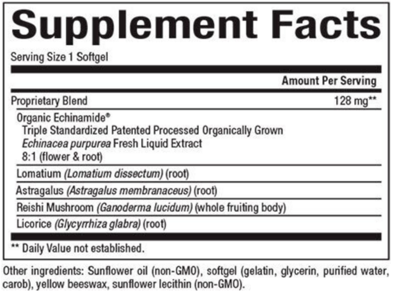 Features ECHINAMIDE, a standardized extract of Echinacea purpurea grown from organically cultivated plant material.