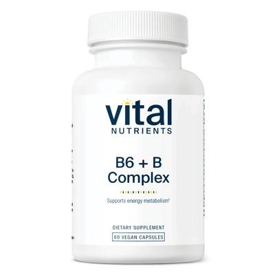 B6 + B Complex by Vital Nutrients combines eight essential B vitamins with an added dose of vitamin B6 to support nervous system function, metabolism, and overall wellness. This formulation is designed for individuals seeking to complement their nutritional regimen and is manufactured in a GMP-certified facility.