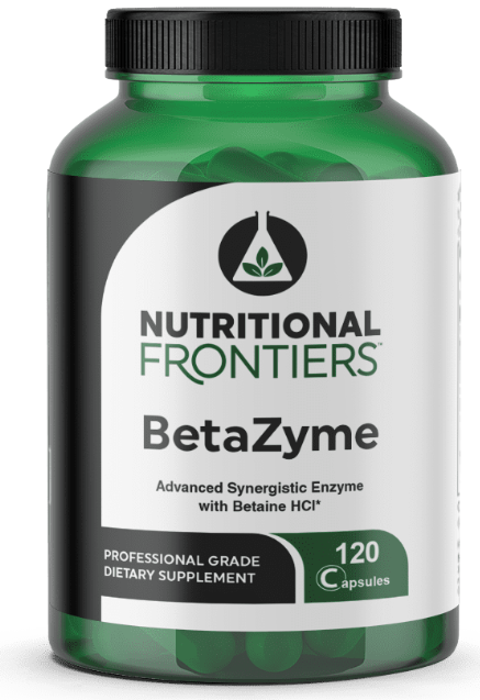 BetaZyme is an advanced synergistic enzyme formula with a unique blend of betaine HCL, pancreatin, gentian root, plus pepsin to support digestive tract function and nutrient absorption.