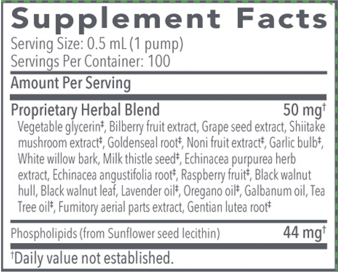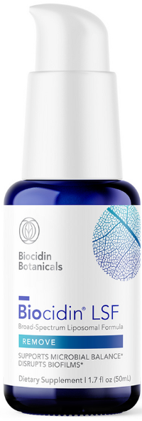 Biocidin LSF Liposomal Botanical Blend is a premium liposomal liquid formula offered in a 30 mL dropper bottle (approx. 100 pumps). It features a proprietary botanical extract blend delivered in sunflower phospholipids for high-absorption. Produced in a GMP-certified facility, this product is free from gluten, dairy, soy, and artificial additives.