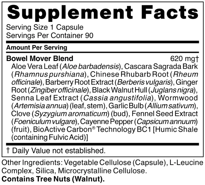 CellCore Bowel Mover™ is a dietary supplement provided in capsule form. Each bottle contains 90 capsules.