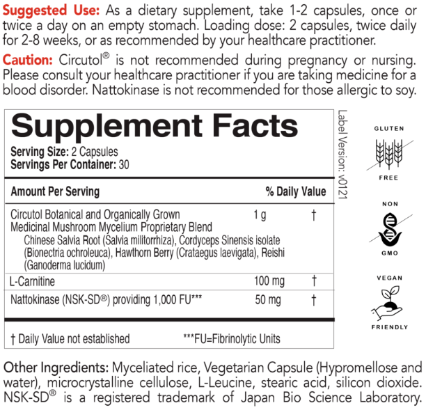 Circutol is a botanical and enzyme blend designed to support healthy circulation, vascular function, and systemic blood flow.