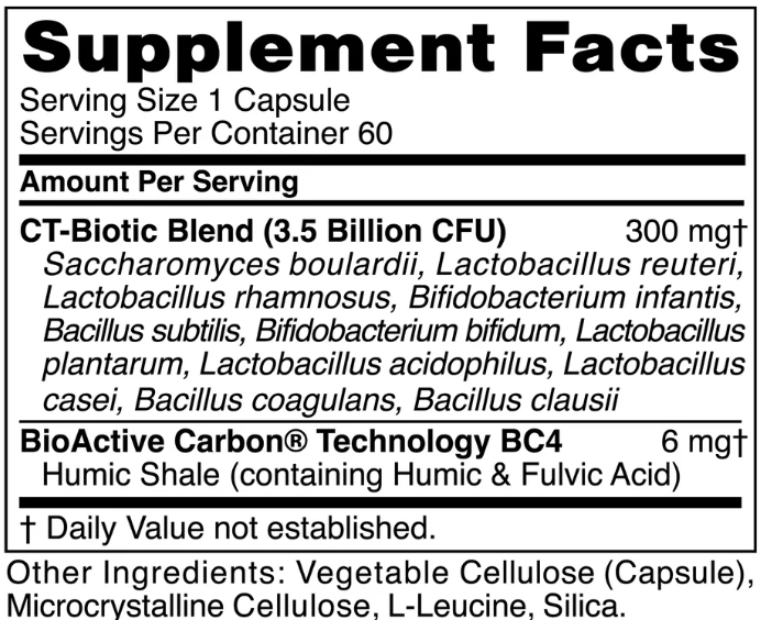 CellCore CT-Biotic™ is a dietary supplement provided in capsule form. Each bottle contains 60 capsules.