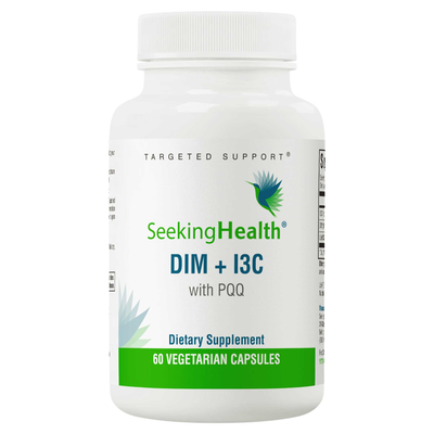 DIM + I3C by Seeking Health contains 400 mg of dietary indoles, naturally occurring components of cruciferous vegetables that may help support the body’s healthy estrogen metabolism processes. DIM (diindolylmethane) is a metabolic byproduct of I3C (indole-3-carbinol), a compound found in broccoli, cabbage and other vegetables in the Brassicacae family. These well-known indoles are combined with other related compounds to provide a broad spectrum of support for processing estrogen metabolites, such as 16-alpha hydroxy-estrone. Indole compounds may help support normal hormone metabolism and estrogen processing in favor of a healthy ratio of estrogen metabolites.*