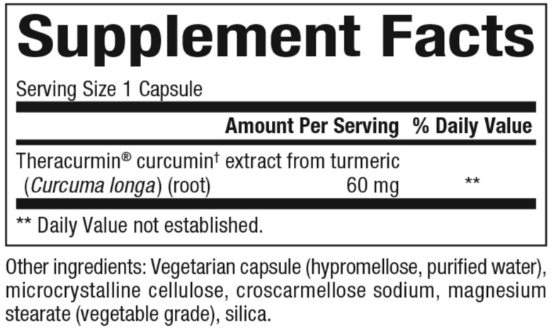 Delivers 60 mg of a highly bioavailable form of curcumin (Theracurmin®) per capsule.