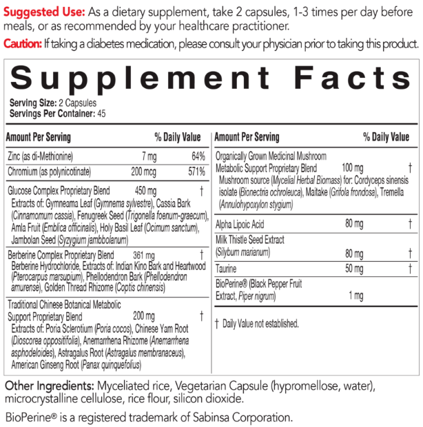 Combines traditional botanicals such as cinnamon, gymnema, and holy basil to support normal metabolic activity.