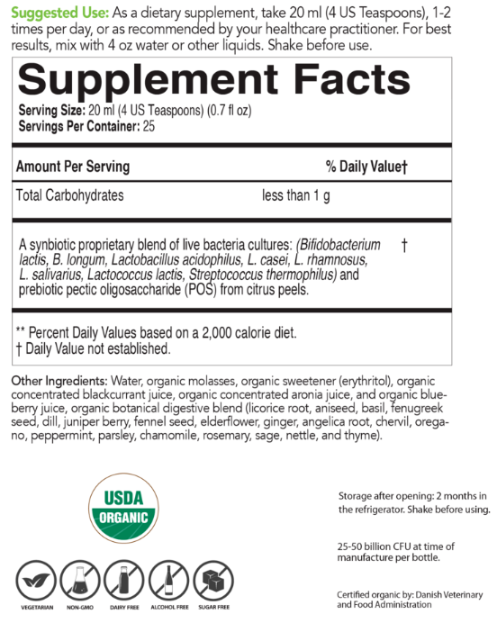 ecoProbiotic is a liquid probiotic formula featuring multiple strains of beneficial bacteria, designed to support balanced gut flora and healthy digestion.
