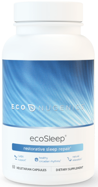 ecoSleep is a nighttime support supplement formulated to promote relaxation and foster restful sleep using a blend of botanicals and nutrients.