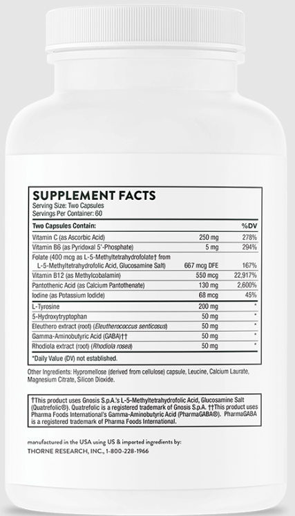 Thorne Emotion Balance Support is a dietary supplement in capsule form.