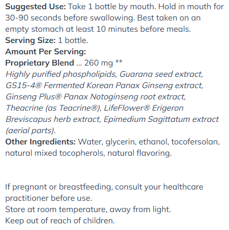 The adaptogenic herb ginseng supports microcirculation to the brain while the natural stimulants guarana seed extract and theacrine provide energy and alertness. They are combined with well-researched adaptogenic and nootropic herbs like epimedium, breviscapine and ginseng to target concentration and feel-good neurotransmitters for an elevated mood while supporting blood flow. These travel-friendly shots are perfect to take on-the-go and use when you need them most.