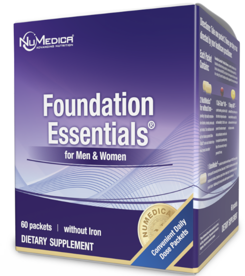 NuMedica Foundation Essentials offers a refined blend of four foundational nutritional formulas in easy-to-use daily packets. Each packet delivers a comprehensive multivitamin (without iron), calcium with MCHC, marine-sourced omega-3s, and crystal-free CoQ10. This formula is engineered for individuals seeking a convenient, high-quality nutrient protocol. Produced in a GMP-certified facility and free from common allergens like dairy, gluten, and soy.