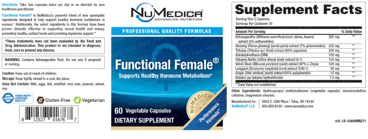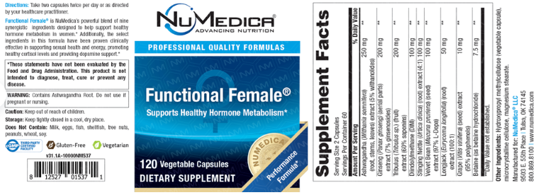 Functional Female® is a comprehensive women’s health supplement that blends targeted botanicals and key nutrients to support hormone balance, energy production, and antioxidant defense. This formula includes clinically relevant levels of vitex, black cohosh, DIM, and green tea extract, along with bioavailable B vitamins and minerals to support optimal metabolic and endocrine function.