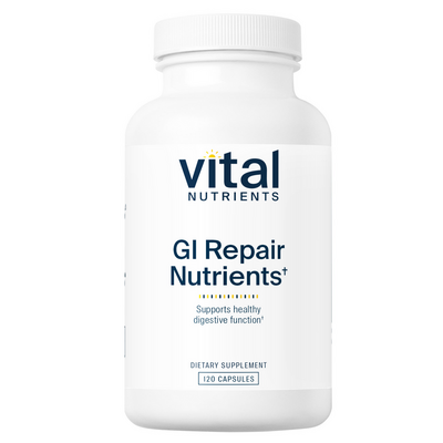 GI Repair Nutrients by Vital Nutrients is a comprehensive supplement designed to support the integrity and function of the gastrointestinal tract. This formula combines amino acids, botanicals, and a stable probiotic to promote healthy intestinal lining and permeability.