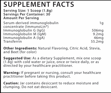 Nutritional Frontiers’ IgG contains ImmunoLin®, a protein-based dietary supplement that contains over 90% protein and 50% immunoglobulins, along with peptides and other growth factors, derived from bovine serum. This completely dairy-free product was designed to support a healthy mucosal immune system in the gut, therefore targets healthy digestive function and immune response, as well as potential benefits for sports performance. IgG by Nutritional Frontiers may have clinical applications in people with diarrhea, immune challenges, GI infections, training for endurance sports, and more.