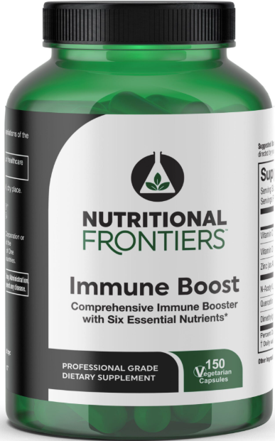 Immune Boost by Nutritional Frontiers is a dietary supplement that combines key vitamins, minerals, and plant extracts. It includes ingredients such as vitamins C and D3, zinc, quercetin, elderberry, and olive leaf extract — all in a convenient capsule format.