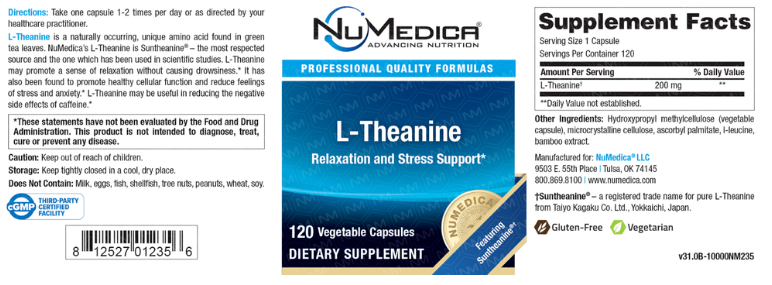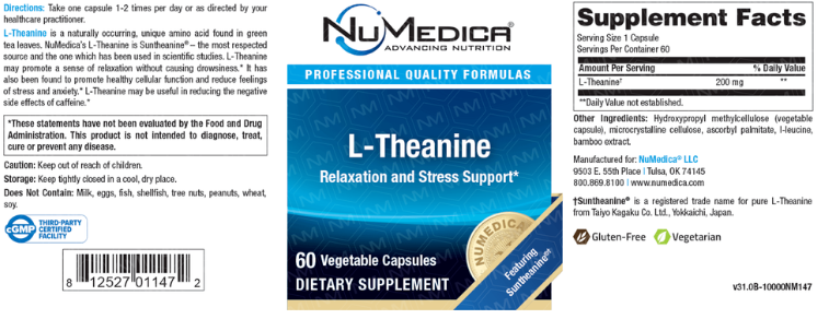 NuMedica L-Theanine provides 200 mg of pure L-theanine (Suntheanine®) per vegetarian capsule. Known for its high quality and purity, this product is crafted without fillers, gluten, soy, or artificial additives, and is suitable for vegan and non-GMO lifestyles. Manufactured in a GMP-certified facility, it fits seamlessly into daily wellness routines.
