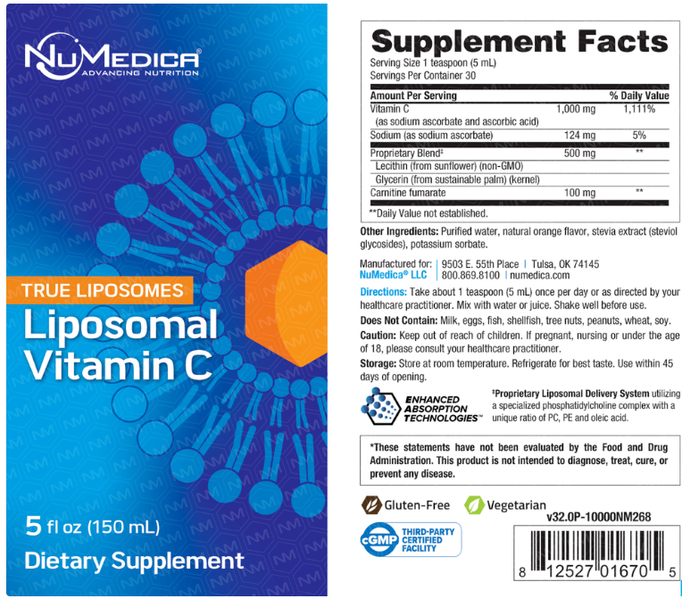 NuMedica Liposomal Vitamin C delivers vitamin C in a liposomal liquid format, crafted without gluten, soy, dairy, or artificial preservatives. Manufactured in a GMP-certified facility, this product supports daily wellness routines with a clean-label approach and high-quality standards.