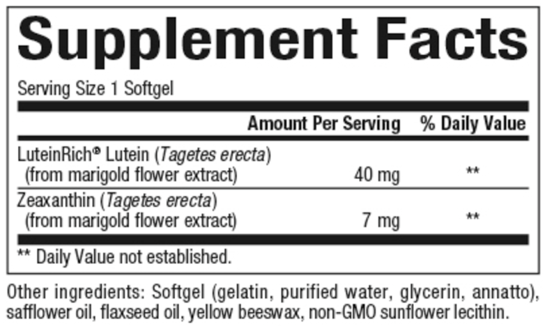 Provides 40 mg of lutein and approximately 7 mg of zeaxanthin per softgel, sourced from marigold flower extract.