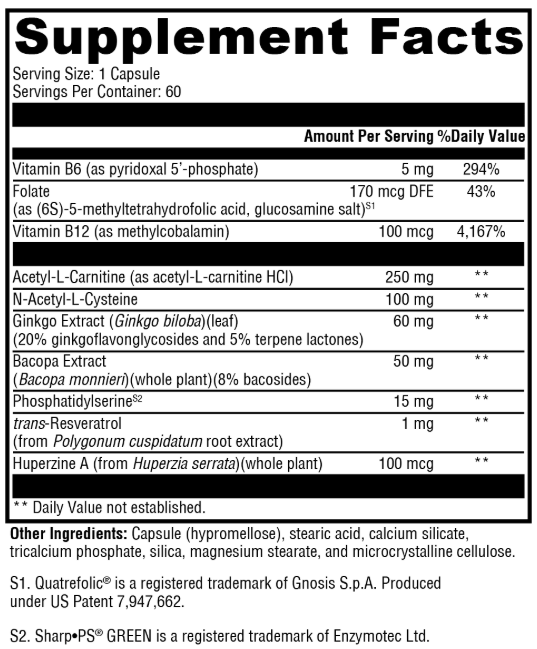 Xymogen MemorAll is a dietary supplement in capsule form. Each bottle contains 60 vegetarian capsules featuring a blend of botanical extracts, amino acids, and nutrient cofactors. The formula is free from gluten, dairy, soy, and artificial colors, flavors, or preservatives.