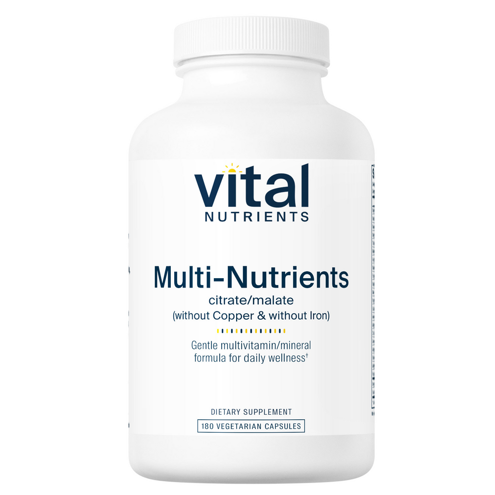 Multi-Nutrients 3 is a high potency multivitamin and mineral and trace element formula that provides the highest nutritional value for all systems of the body, including bone, skin, cardiovascular, liver, and immune support.* This formula incorporates premium ingredients to ensure optimal absorption and physiological activity, including folate as Metafolin® L-5-MTHF, Vitamin D3, potent antioxidants and mineral amino acid chelates.* It is a bioavailable, gentle formula that is well tolerated by most individuals.* Multi-Nutrients 3 contains minerals in citrate/malate form for better absorption.* This formula contains copper and does not contain iron.*