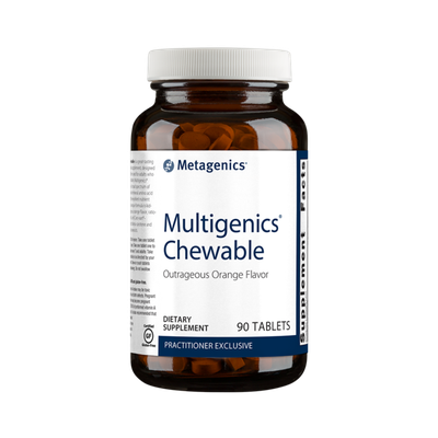 Multigenics® Chewable (Outrageous Orange Flavor) is a great-tasting vitamin and mineral supplement, designed specifically for children and for adults who prefer a chewable tablet. Multigenics® Chewable features a broad spectrum of essential vitamins and mineral amino acid chelates designed for excellent nutrient bioavailability. This unique formula is kid-tested; with outrageous orange flavor, ratio-balanced B vitamins, and Caro-xan®–a proprietary blend of beta-carotene and Betatene® mixed carotenoids.