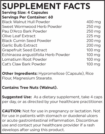 Para-Kill is a blend of herbal extracts formulated to provide intestinal and immune support. This should be taken only under supervision of your healthcare provider. Once you and your healthcare practitioner have tested and determined the presence of microbial imbalance in the intestines, Para-Kill may be part of your protocol to help restore intestinal balance.