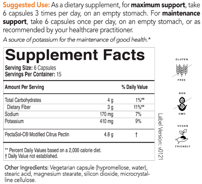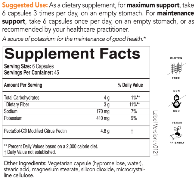 • Contains high-quality modified citrus pectin in encapsulated form for convenience