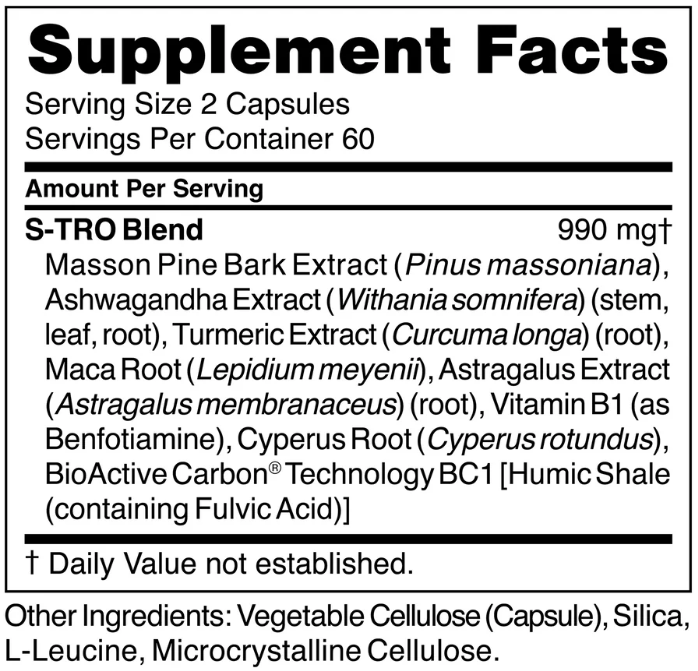 CellCore S-TRO™ is a dietary supplement provided in a capsule format. Each bottle contains 120 capsules.
