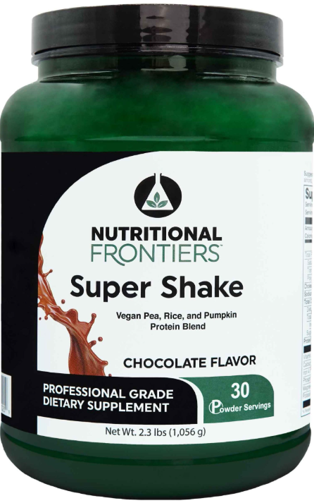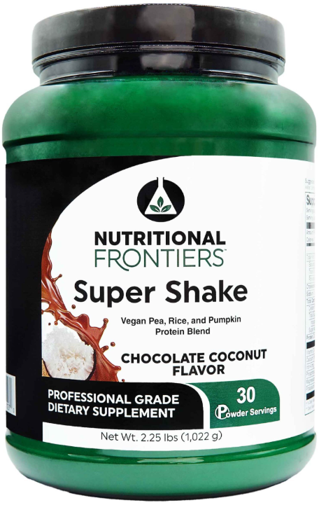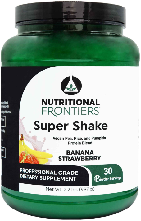 Super Shake can be mixed easily with water, coconut, rice or almond milk, and juice. Super Shake may be added to a blender with fresh or frozen fruit, coconut, rice or almond milk, ice, nut butter, and/or for extra nutritional value, one of Nutritional Frontiers’ Pro Colors powders such as Pro Lean Greens, Pro Oranges, Pro Purples, or Pro Reds.