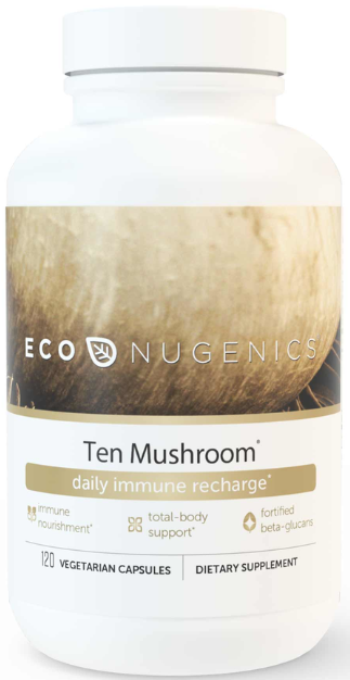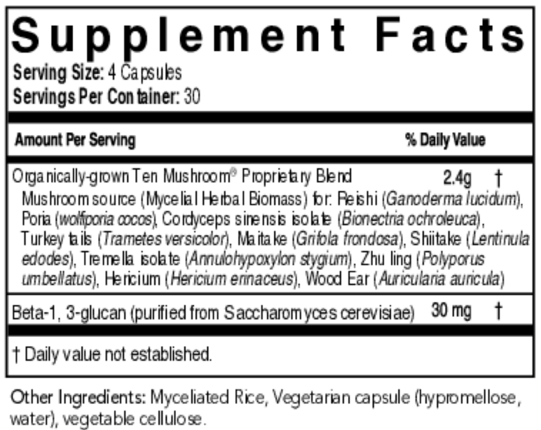 Combines ten functional mushrooms, including reishi, turkey tail, cordyceps, lion’s mane, maitake, shiitake, and others