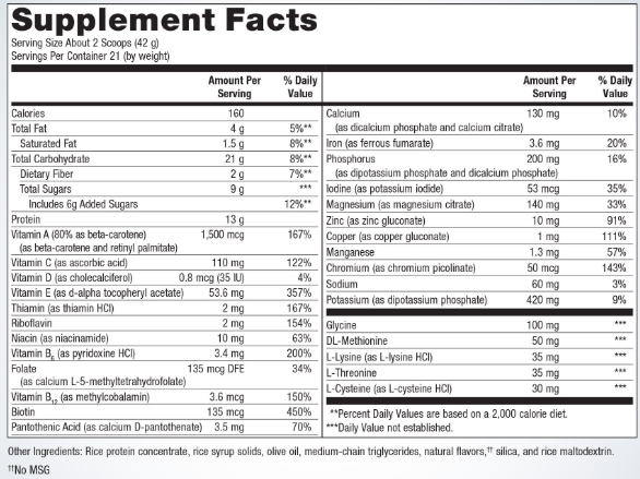 UltraClear® is formulated to provide specialized nutritional support for metabolic detoxification. It features a rice protein base, which may help support liver function during metabolic challenge, and is also enhanced with specific nutrients. It is high in antioxidants (beta-carotene and vitamins C and E) to provide well-rounded nutritional support.*