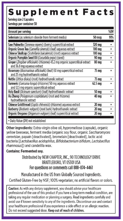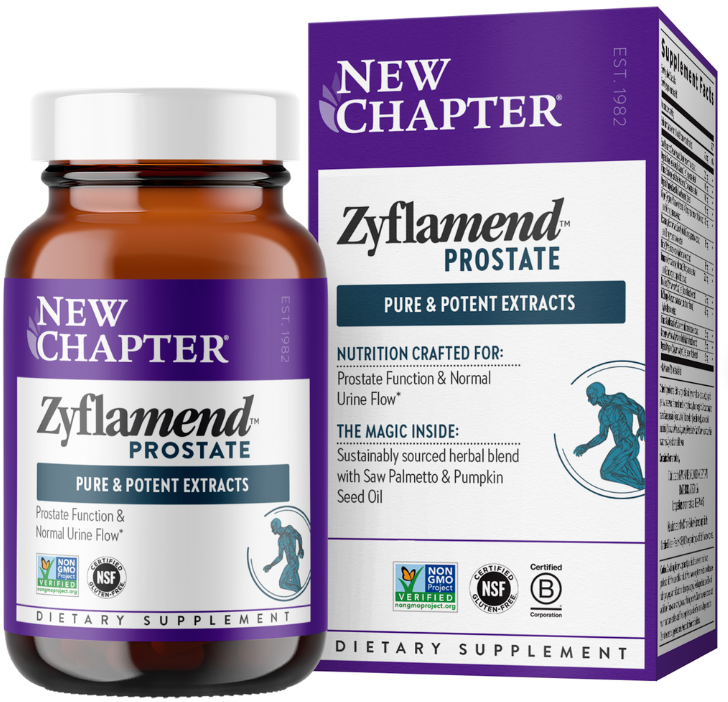 New Chapter Zyflamend™ Prostate combines a whole-herb antioxidant blend—including non-GMO Ginger, Turmeric, Green Tea, Rosemary, supercritical Saw Palmetto, and organic Pumpkin Seed oil—to support prostate health, healthy aging, and normal urinary function.* This potent herbal supplement promotes overall prostate well-being with pure, full-spectrum extracts.*